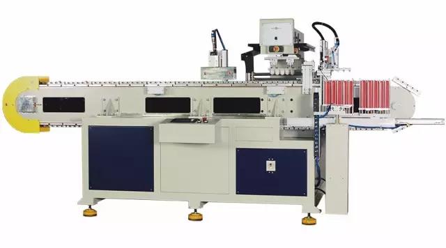 1、 印刷速度比轉(zhuǎn)盤機(jī)慢,但印刷工件可以大一些,四個(gè)顏色一次套色印刷完成。