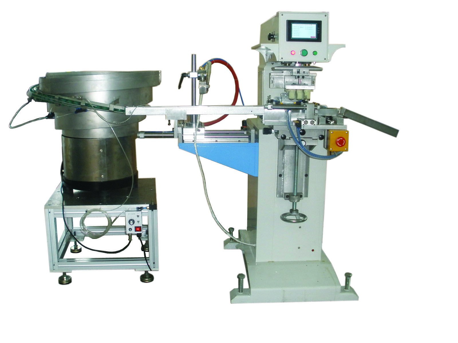 機型TM-155C單周期: YES工件高度70mm印刷速度1800Pcs/h鋼板尺寸:100mmx100mm印刷面積:50mmX50mm控制面板: TOUCHscreen電源: 110V or 220V 50/60HzV電功率:20W 6BarW外尺寸:560mmX340mmX540mm